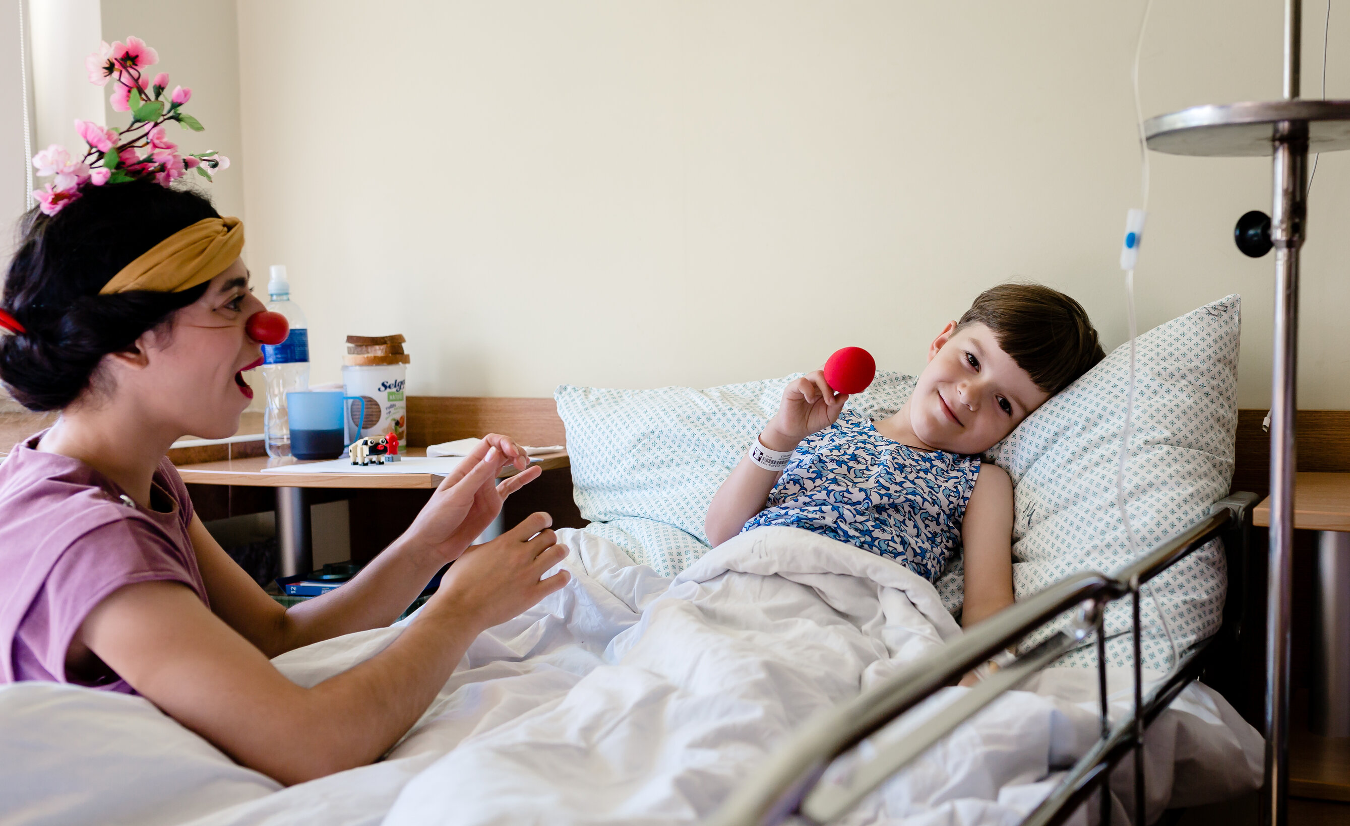 Sostinės Santaros klinikų Vaikų ligoninėje startavo nauja „Raudonos nosys Gydytojai klounai“ programa „Intensyvi šypsena“. Vaikų ausų, nosies, gerklės ligų (LOR) skyriuje gydomi vaikai gali ruoštis operacijoms su šypsena – žiūrėdami šmaikščius gydytojų klounų sukurtus vaizdo įrašus. Peržiūrėję keturių dalių „mini serialą“ apie laukiančias procedūras, vaikai gali vaizdo skambučiu pabendrauti ir su gydytoju klounu.