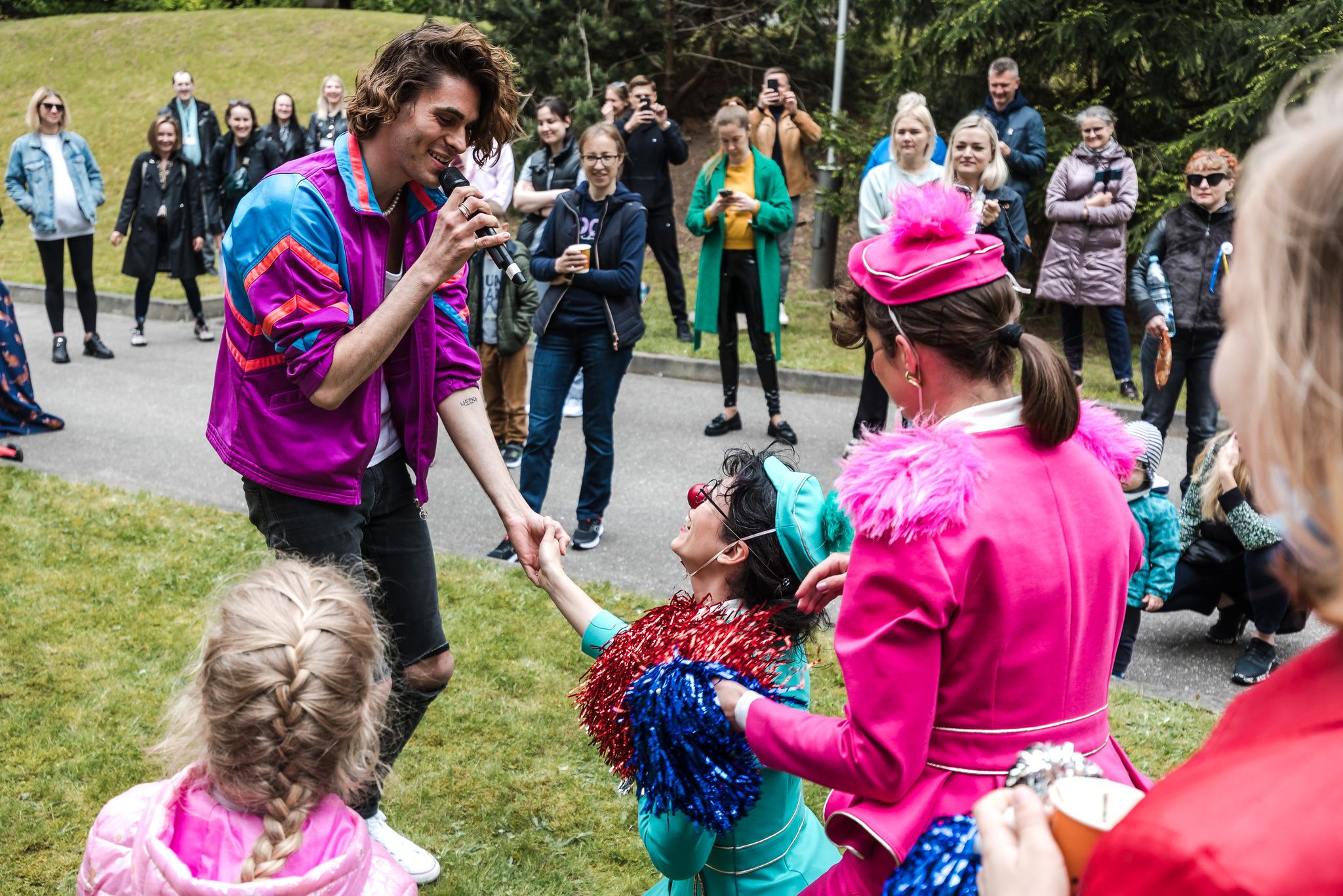 Žaliuojančiame ligoninės kiemelyje pasijautė vasaros lengvumas – tiek mažųjų, tiek suaugusiųjų širdis pavergė „Lietuvos balso“ ir „X-faktoriaus“ žvaigždžių dainos - Paulina Paukštaitytė, Nojus Žebrauskas ir Antuanas iš grupės „Mando“ pakylėjo iki debesų. Programos kulminacija tapo mini festivalis – vaikai galėjo išbandyti vairavimo simuliatorių, buvo proga apžiūrėti sportinius automobilius ir išmanius elektromobilius, aukščiausias pasaulyje artistas Mantas užbūrė muilo burbulais, susirinkusieji mėgavosi vaikystės skoniais – kakava ir keksiukais. Ligoninės viduje mažuosius pacientus džiugino gydytojai klounai ir šventės proga dalino partnerių dovanas.